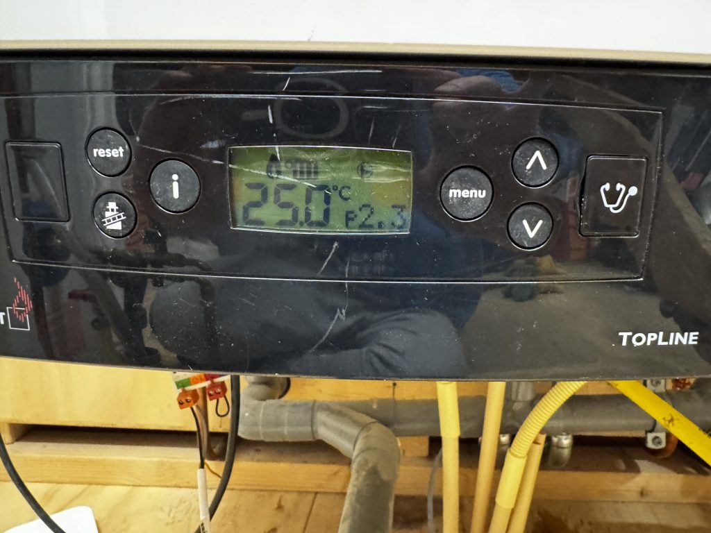 Maar helaas, toen de stekker weer in het stopcontact ging, geen hijgende en puffende geluidjes vanuit de CV ketel. En ook geen gasmeter die ging lopen. Wel een knipperende 0.0 en ‘service’ op het scherm.